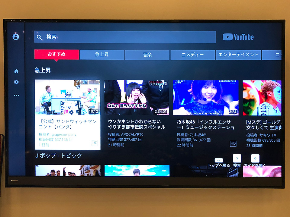 今までfire TVでは水色の背景に白抜きの文字でYouTube.comと書いてある誰かかが作ったアプリ(YouTube非公式)みたいなものしかなかったので、すごく進歩しています!