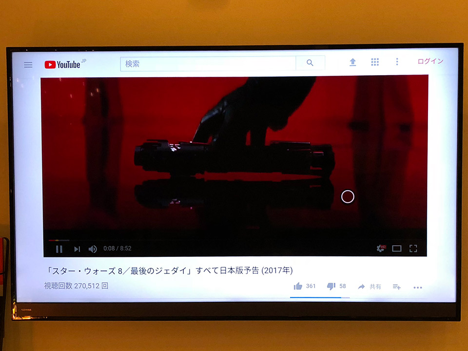 4KテレビでYouTubeの画質にうるさい方は、スマートフォンからクロームキャストに流した方が、YouTube再生に関してはよりきれいに再生されます。