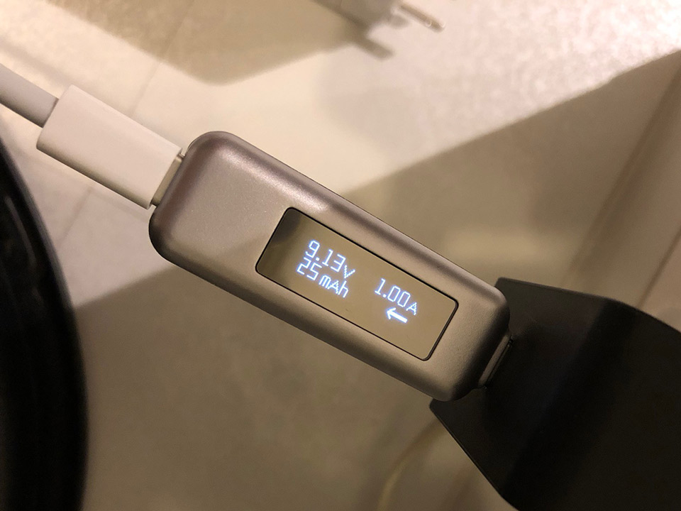 これは強力に9V*2Aの18Wで充電されますので、5W入力の3.5倍、急速充電器の2倍近い電力で充電されているのがわかります。USB PDでは充電状況により出力が可変するようですので、一概にこの電力で充電が続くわけではないのですが、非常にパワフルなのはわかってもらえると思います。