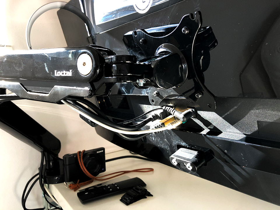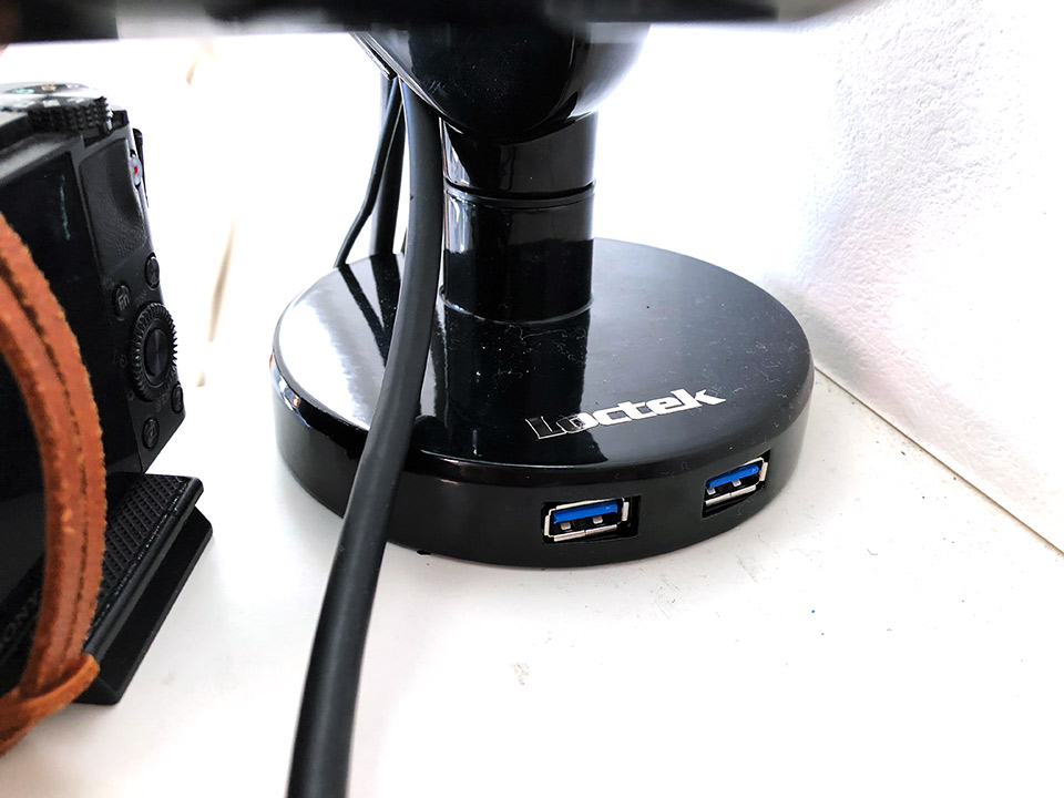 アームが折りたたんで使われている感が、すごくかっこいいと思うのは男子だからなのか。ロボットっぽくてちょっとカッコいい。無駄にケーブル、たくさん入れるとさらにかっこいい気さえしてきます。