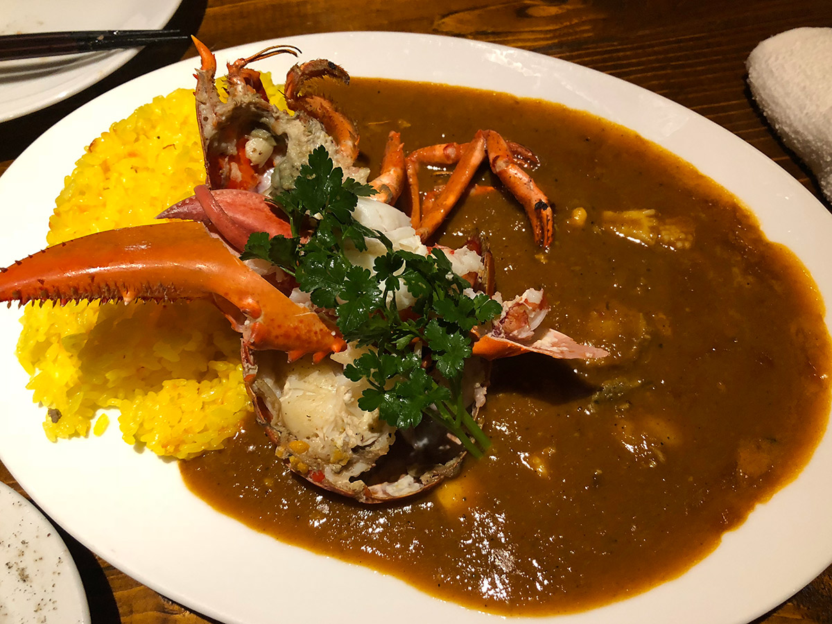 オリジナル配合の9種類のスパイスをつかった Wスープ、チャツネと限界に挑戦したエビゾーオリジナルカレーは、ただのシーフードカレーもありますが、ロブスター半身載せがいいのでは?