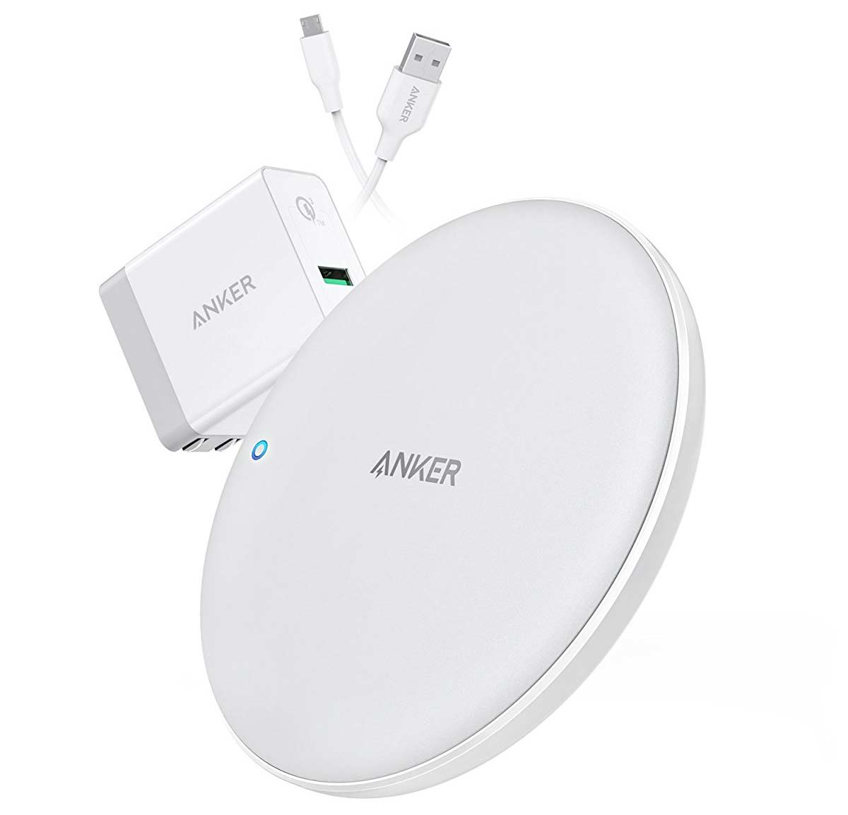充電中にスマートフォンの向きを変えて使えるAnkerのスタンド式ワイヤレス充電器です。AnkerのQiワイヤレス充電器(PowerPortシリーズ)は、iPhone8、iPhone Xの急速充電対応になった機種に対応したものがでていませんでしたが、協力な充電器も同梱で改めてスタンドタイプとパッドタイプの二機種が発売となります。