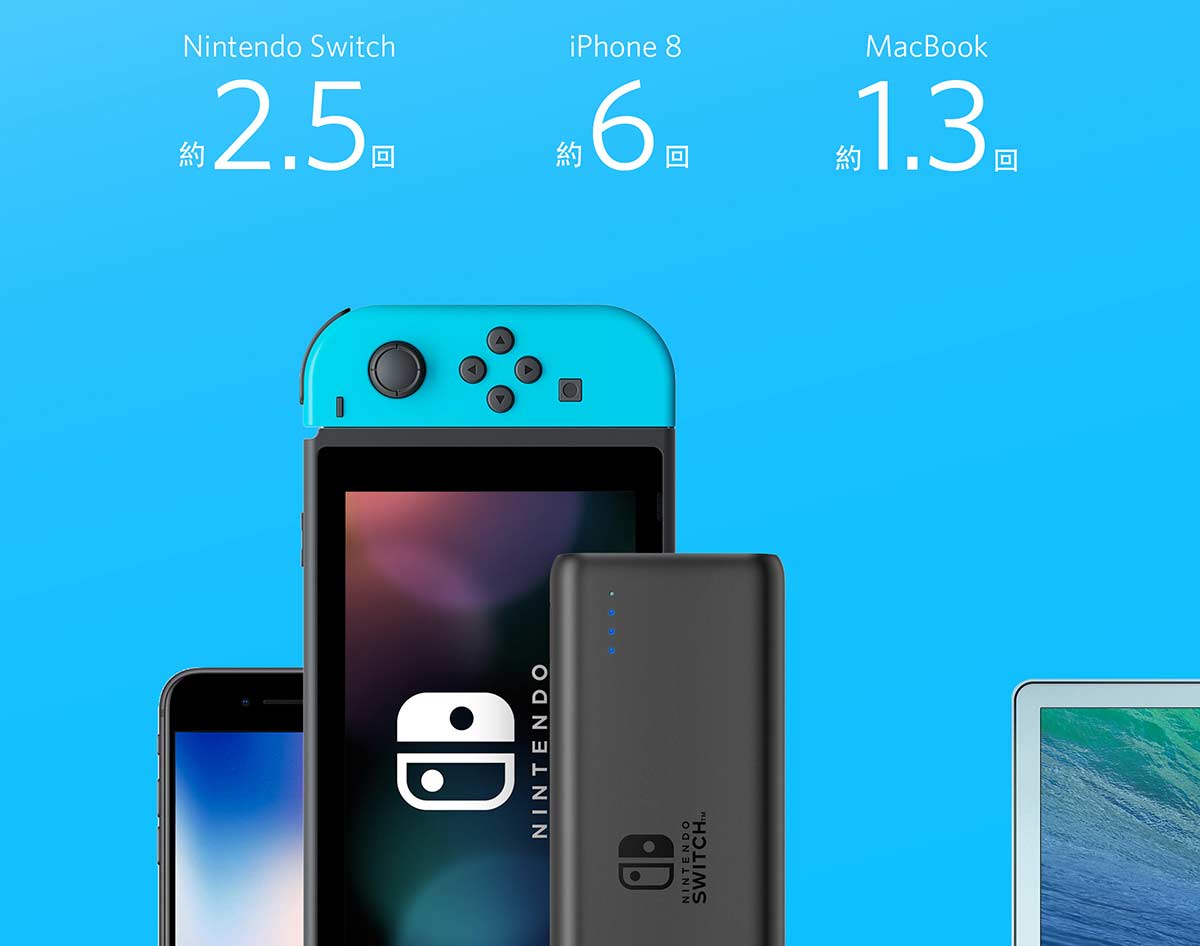 Nintendo Switchを1.7回充電、iPhone8を4回充電、MacBookなら0.8回充電できます。