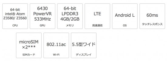 となっていて、格安スマホの価格帯ではなくなっているのと、スペックがすでに下記の通りですが、クアドコアのCPU搭載、メモリも4GB、ディスプレイは5.5インチ1920×1080フルHDとiPhoneも真っ青なスペックですね。