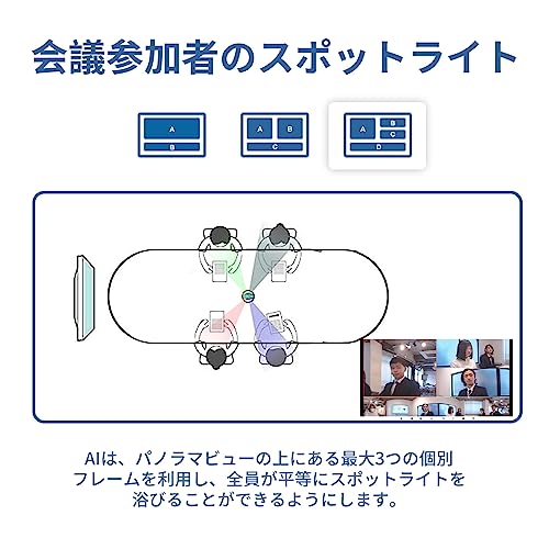 【360°ビュー&4K解像度であらゆるディテールをキャプチャー】遠隔会議をスマートにするために設計されたCOOLPO AI HUDDLE PANAカメラは、あらゆるビデオ会議に必要なものすべてです。360°オールインワンで、スティッチングなしで部屋全体を4K解像度でキャプチャします。小さなウェブカメラの周りに群がるのではなく、参加者全員が会議室に快適に座ってビデオ会議に参加することができます。