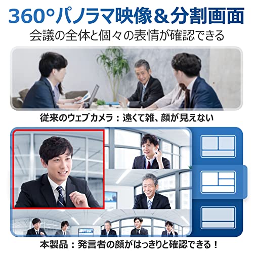 この会議用ウェブカメラは、カメラ、マイクとスピーカーが搭載され、1台のこのカメラだけでWEB会議に必要な機材がそろうわけです。カメラのレンズは360度映るカメラで部屋全体を映し、発言者に自動でフォーカスします。オートフォーカスと露出は自動で補正されるそうです。これが本当であればかなり便利な機材であることは間違いないです。